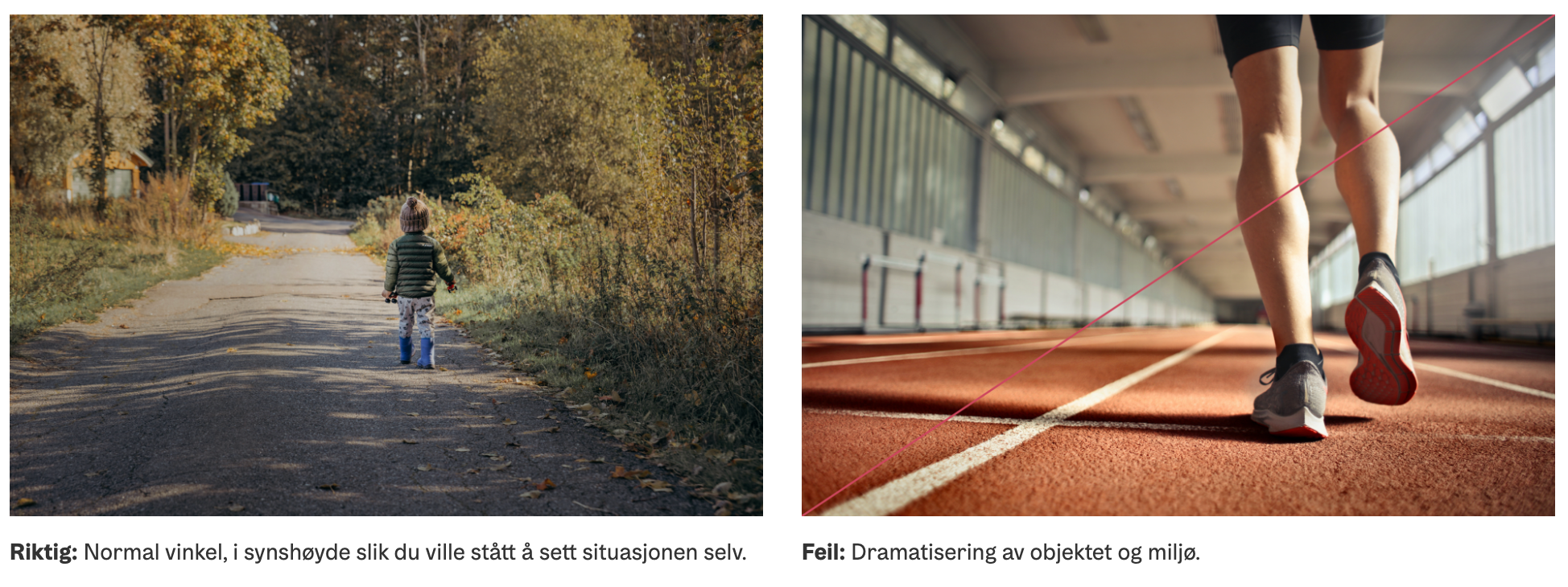 Fototeknisk spiller vi på forgrunn/bakgrunn og har en lik kamerahøyde som objektet i bildet for å skape tilstedeværelse og kontekst.