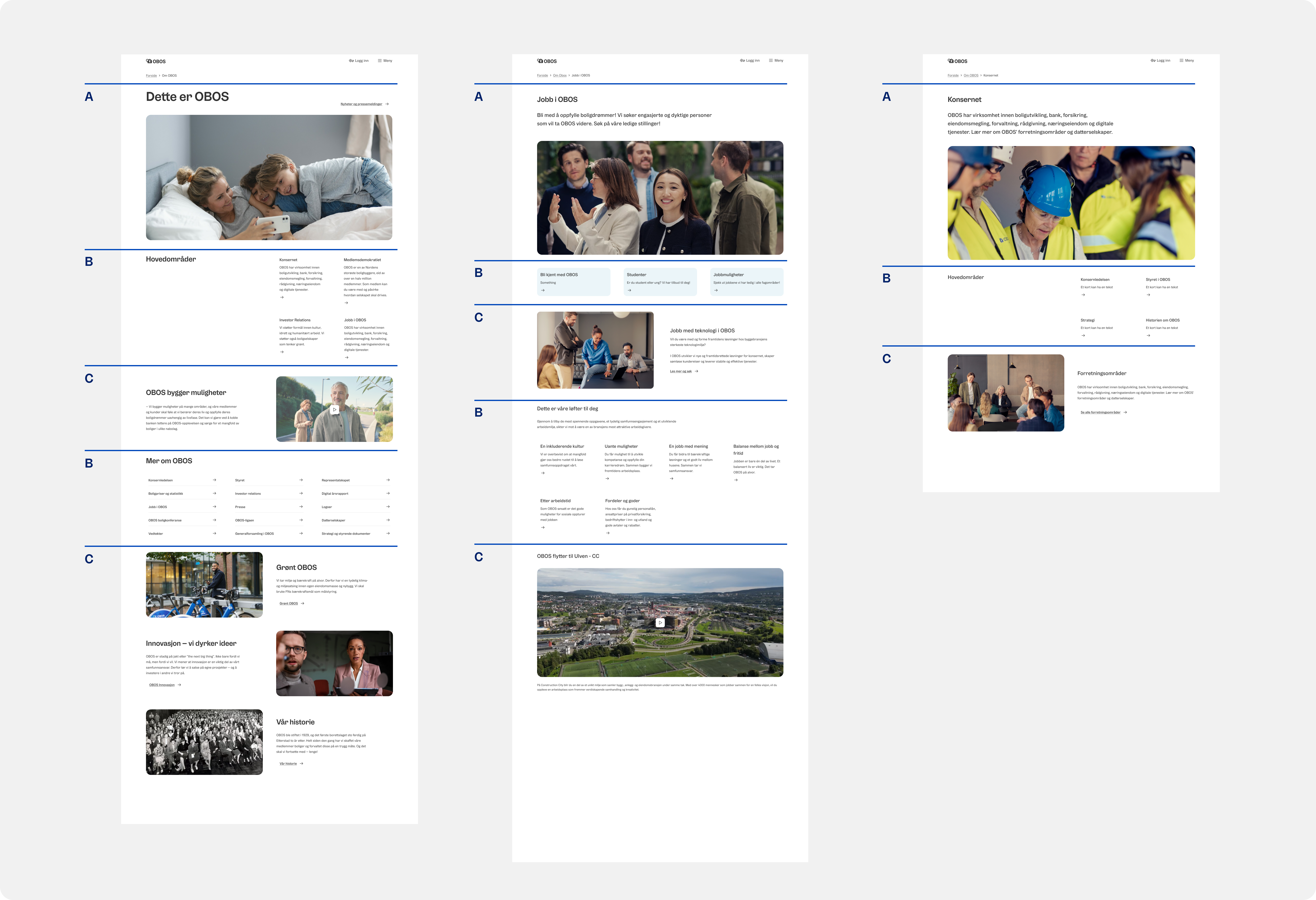 Grid-layouten er et verktøy som OBOS-designerne bruker for å skape en rytme i designet. Den gir en god struktur og proporsjoner som hjelper til med å veilede designet på tvers av ulike medier. Når man bruker den smart, får man harmoniske forhold mellom lerretet og innholdet.