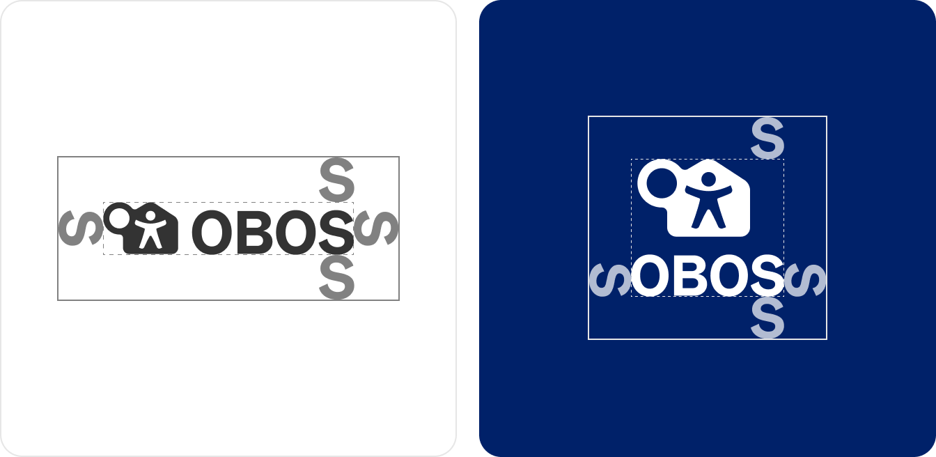 OBOS-logoen skal alltid være godt synlig. Hold logoen adskilt fra andre visuelle elementer med en avstand lik høyden. Denne avstanden regnes som den minste uavbrutte plassen rundt logoen. Vi kaller det isolasjonsområdet, eller frisone, og det bør overholdes i de fleste situasjoner.