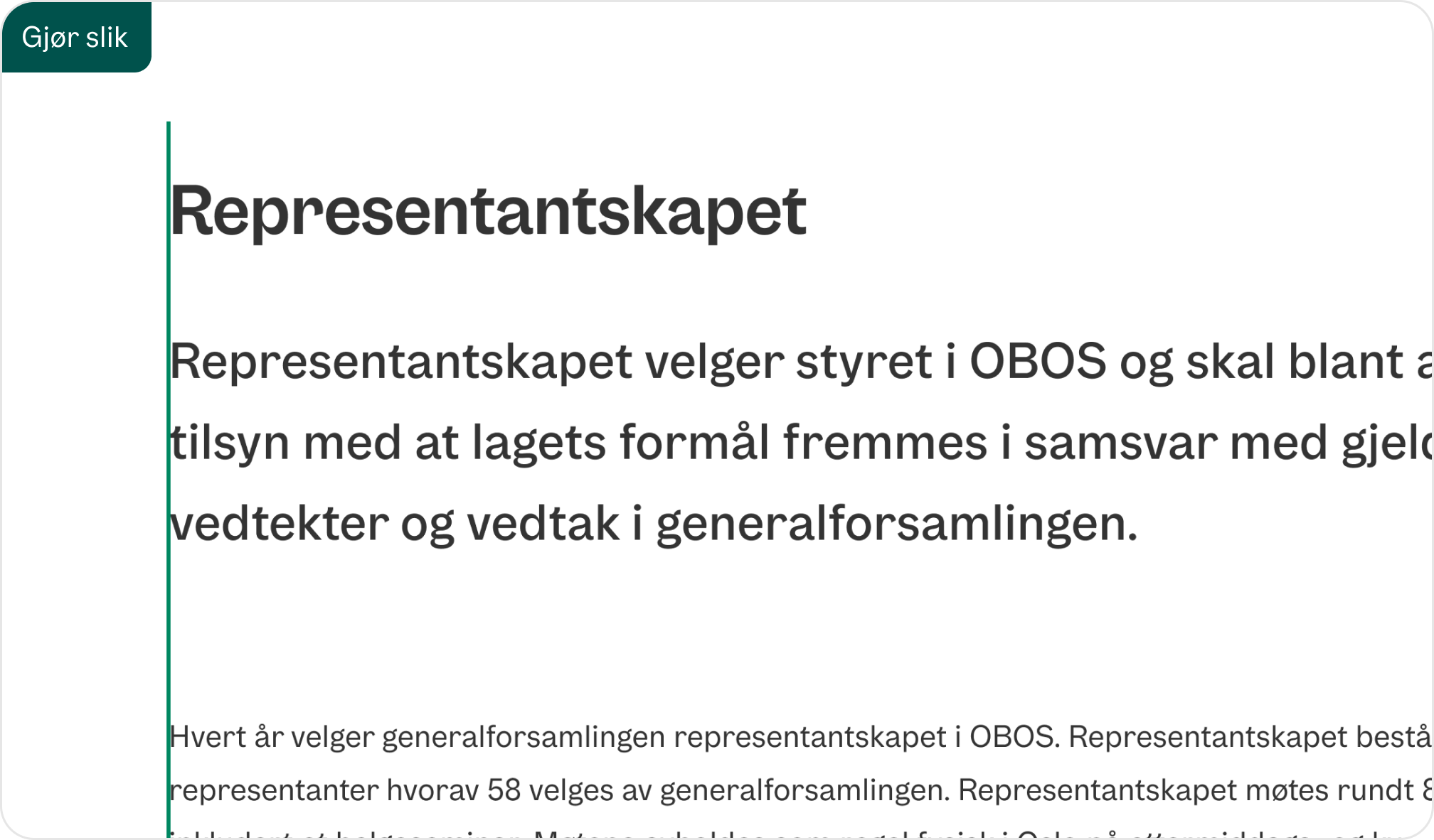 I OBOS har vi følgt Dyslexia style guide for å gjøre leseopplevelsen god for alle, også dem med lese og lærevansker.