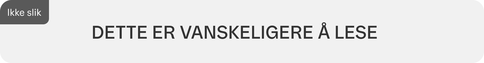 Om en skal gjøre lesbarheten bedre for personer med dysleksi og lærevansker, så kan avstanden mellom bokstavene (kerning) økes med 35%. (Eksempelet under med heading-m hvor kerning er satt til 1.5px)
